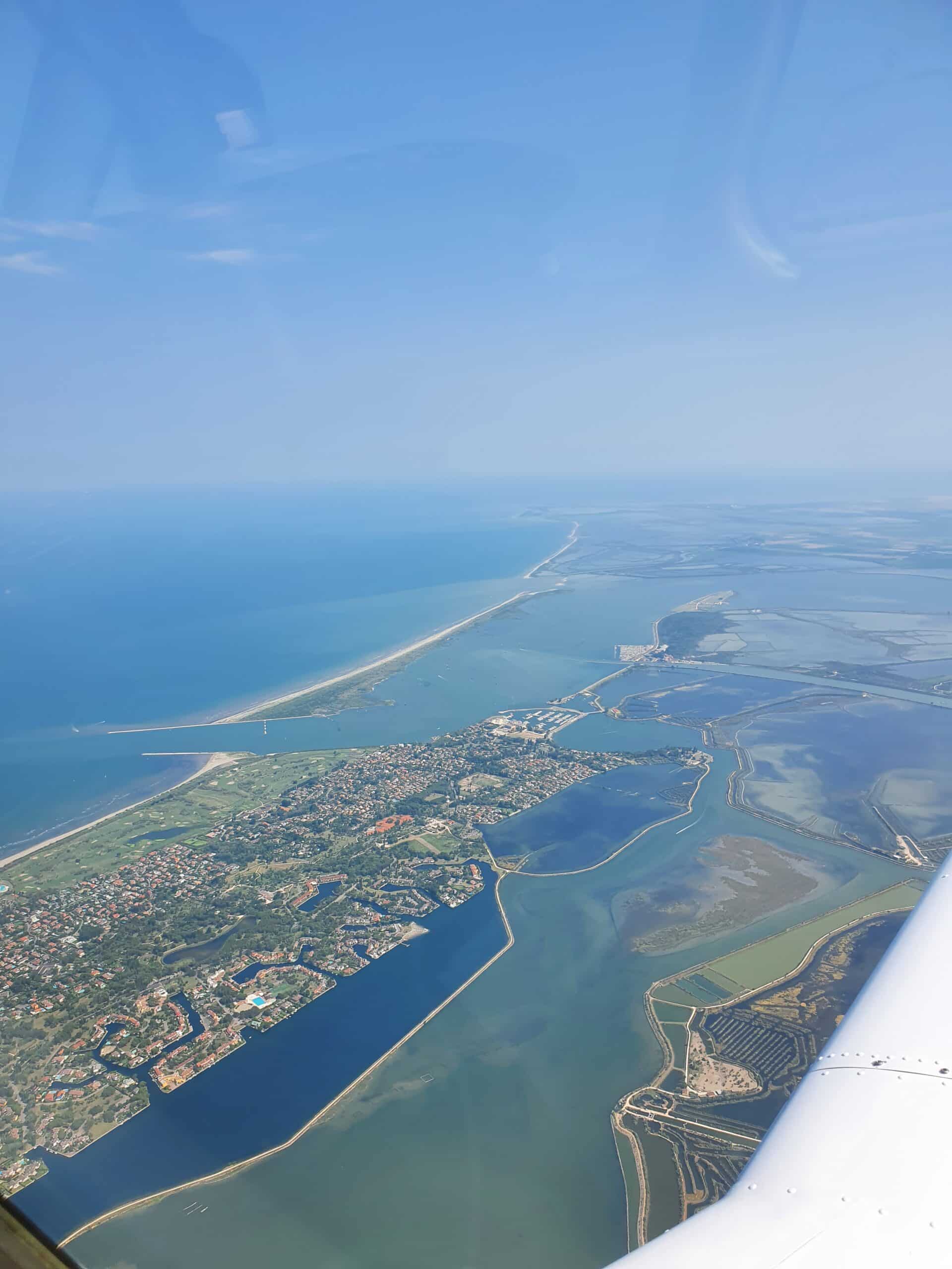 Dieser war ein frühes, letztes Bad im Meer bei erfrischenden Temperaturen, duschen und ab an den Flugplatz. Der Abflug sollte ab 9 Uhr möglich sein, bei Ankunft mit dem Taxi um 08:45 Uhr war der Platzwart schon bereit. So zahlten wir unsere Park- und Landegebühren und konnten sogar noch zwei Touch and Go verhandeln, um die herrliche Küstenlandschaft und das Städtchen Vrsar von oben zu geniessen. Und natürlich um die Langschläfer auf dem Campingplatz zu wecken 🙂