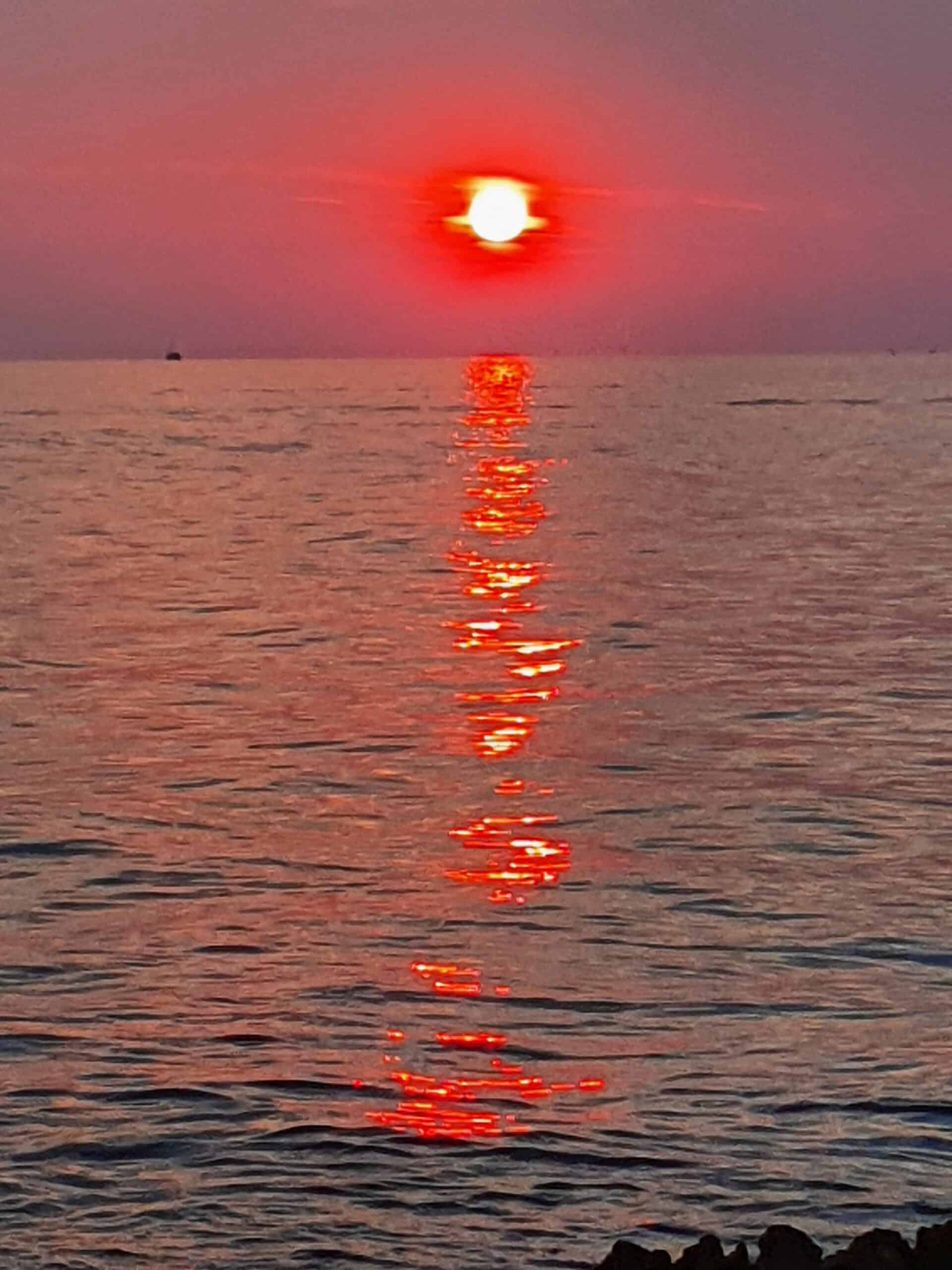 Abkühlung im türkisen Wasser Istriens, Goldbrasse mit Pommes, Bier und beste Aussicht auf den Sonnenuntergang waren das Abendprogramm, bevor wir ziemlich erledigt den Weg ins Bett fanden. Herrlich, nach so einem langen Tag einzuschlafen…