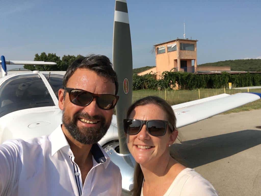 Die 14 Minuten Flug waren zu kurz, um die herrliche kroatische Küstenlandschaft zu geniessen – schon mussten wir uns auf die Landung konzentrieren. Auf unsere Anmeldung am Funk bekamen wir tatsächlich eine Antwort mit einer Landing-Clearance für Piste 18 und eine Info, wo wir die HB-PIX für zwei Nächte parkieren können. Die Formalitäten sollten wir erst bei Abflug am Samstag erledigen und so bot sich gleich neben dem Flugplatzgebäude eine kleine „Beiz“ für eine Erfrischung an, während wir auf das Taxi zum Campingplatz warteten. Perfekt!