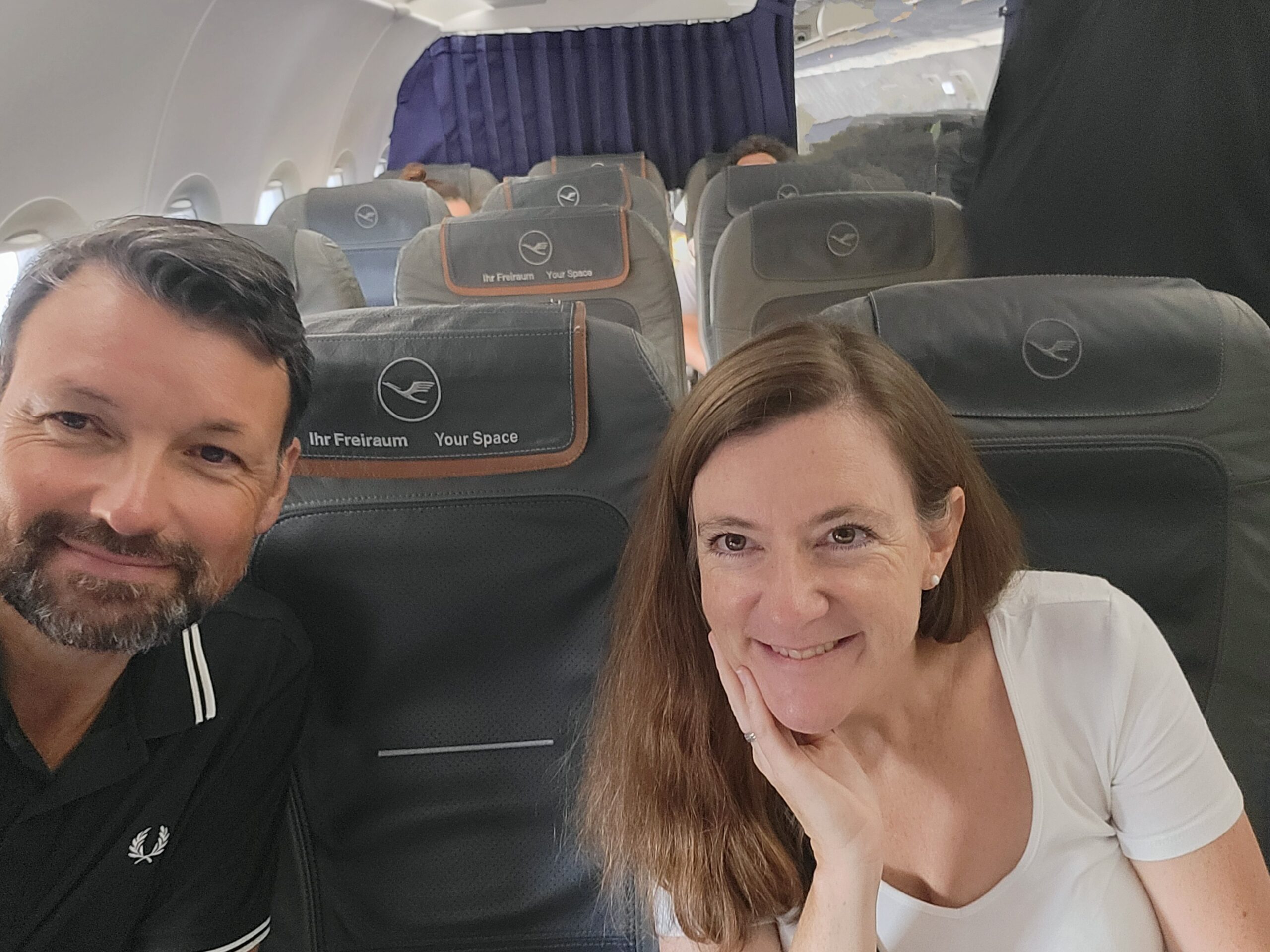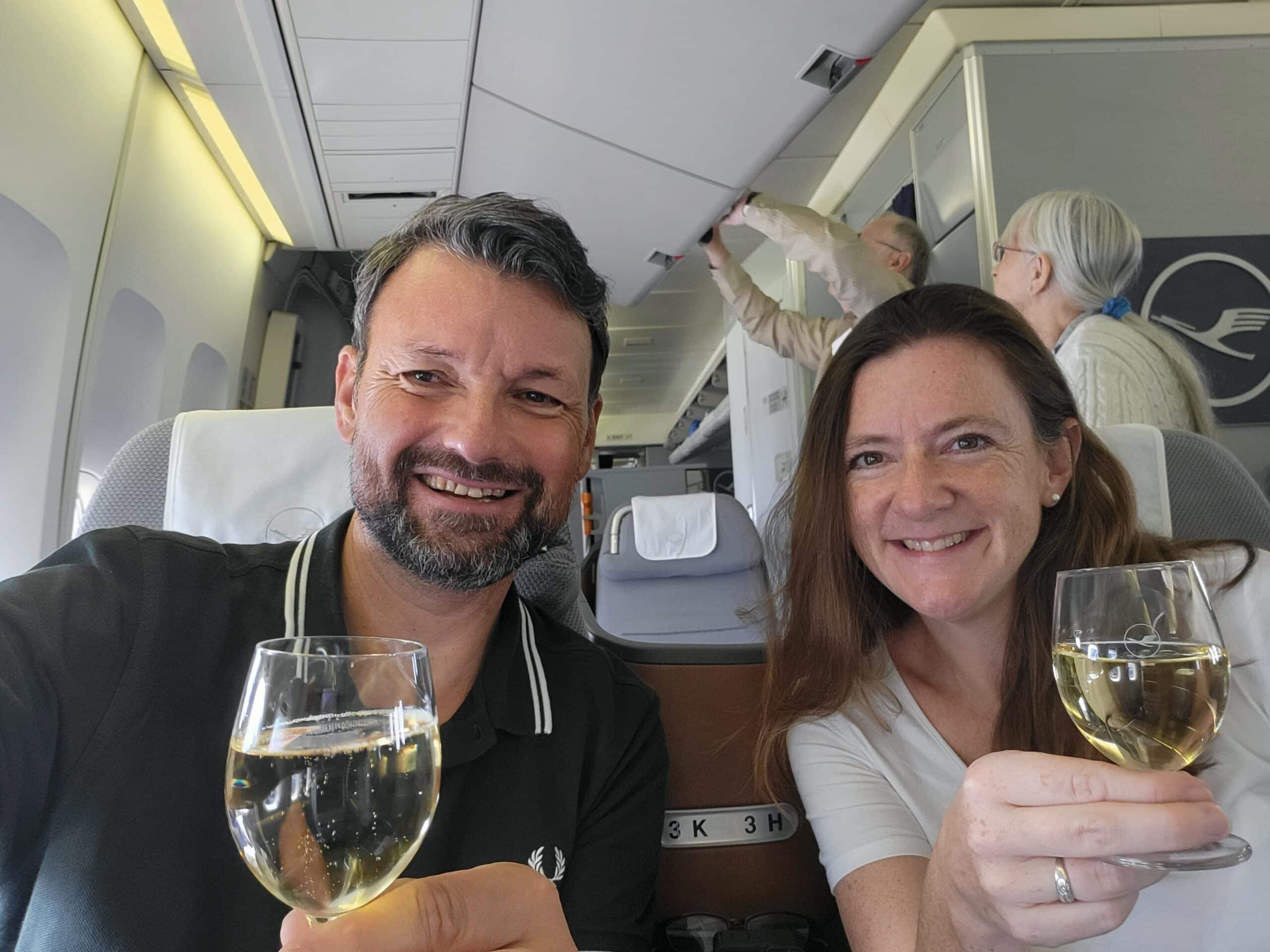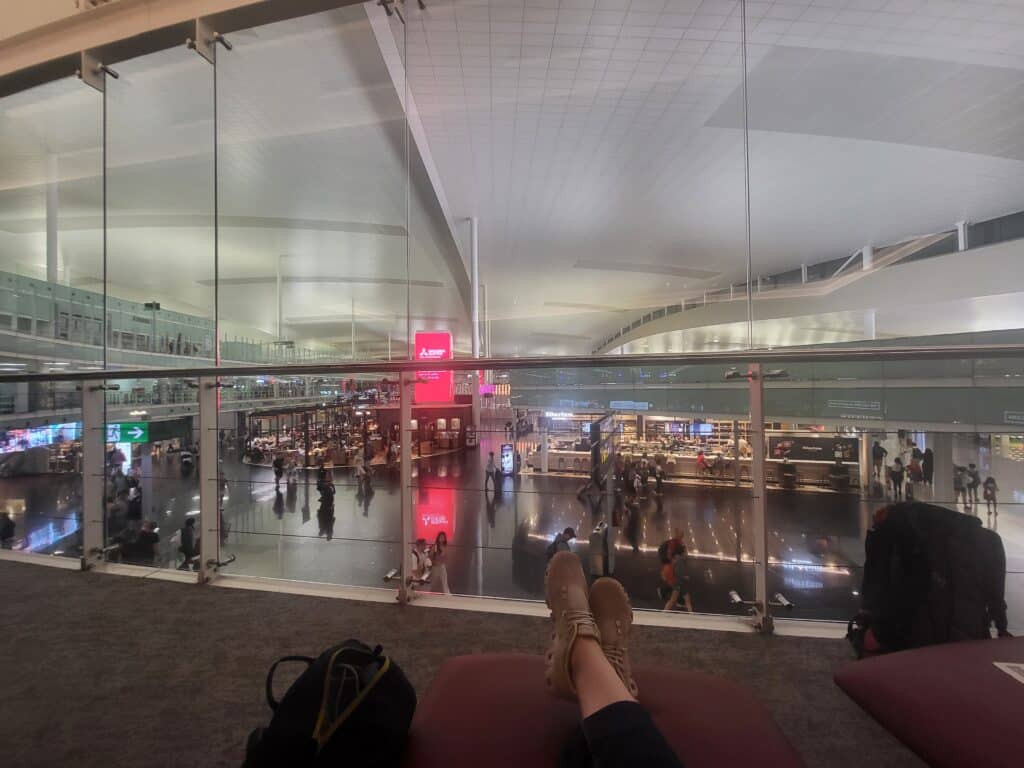 Gegen 18:30 Uhr waren wir wieder im Zug zum Flughafen. Die Fahrt dauert rund 30 Minuten und so hatten wir nach dem Abholen des Handgepäcks und erneuter Sicherheits-Kontrolle genug Zeit, um noch etwas in der Lounge zu relaxen. In der Zwischenzeit war es in der Schweiz schon gegen 3:30 Uhr morgens. Kein Wunder also, dass wir in der Lounge etwas eingenickt sind und uns vorsorglich den Wecker gestellt haben (den wir dann aber doch nicht brauchten, weil bequem war das nicht).
