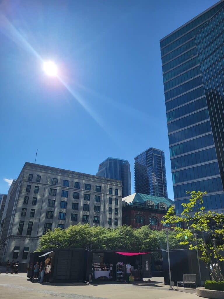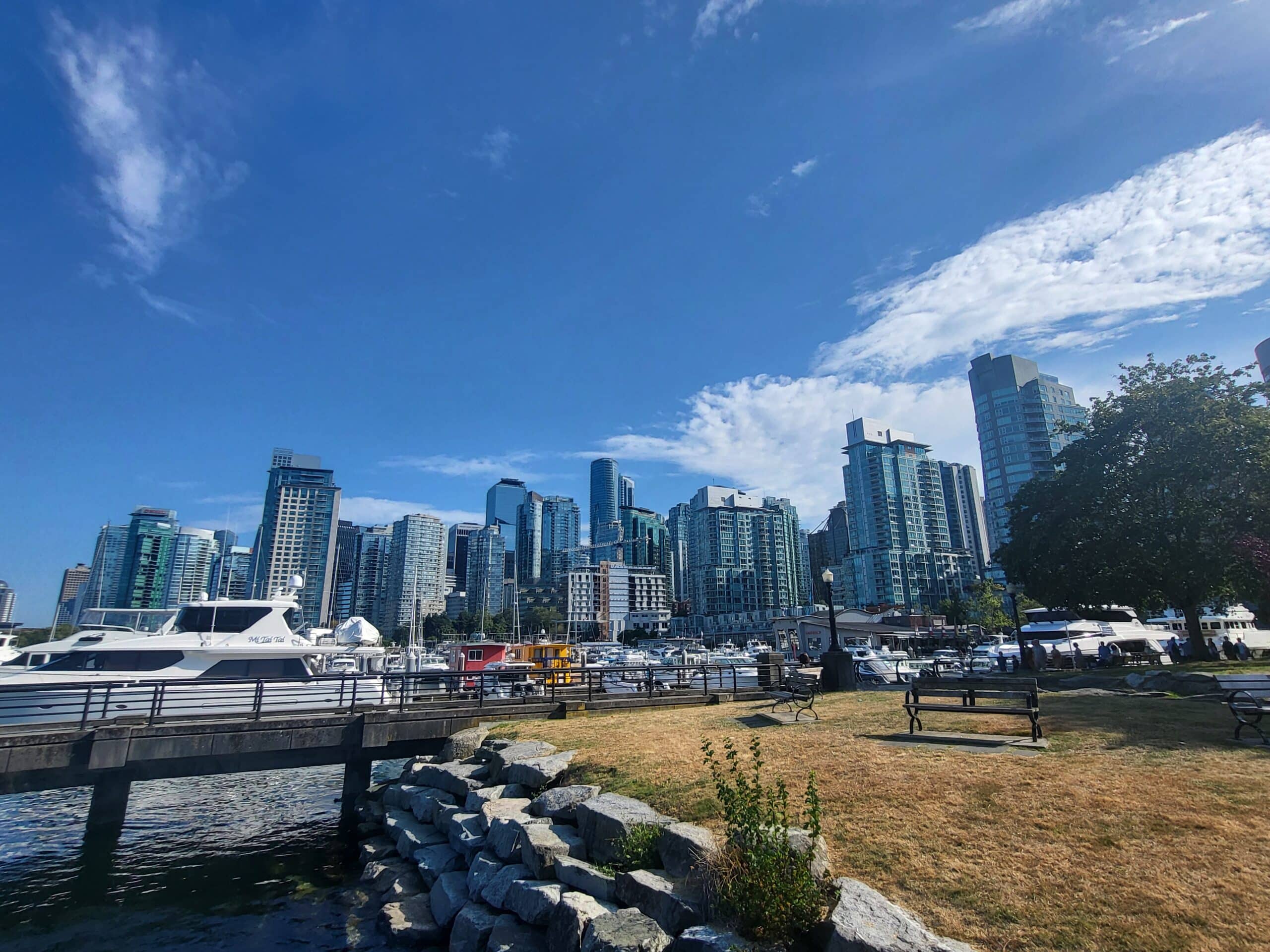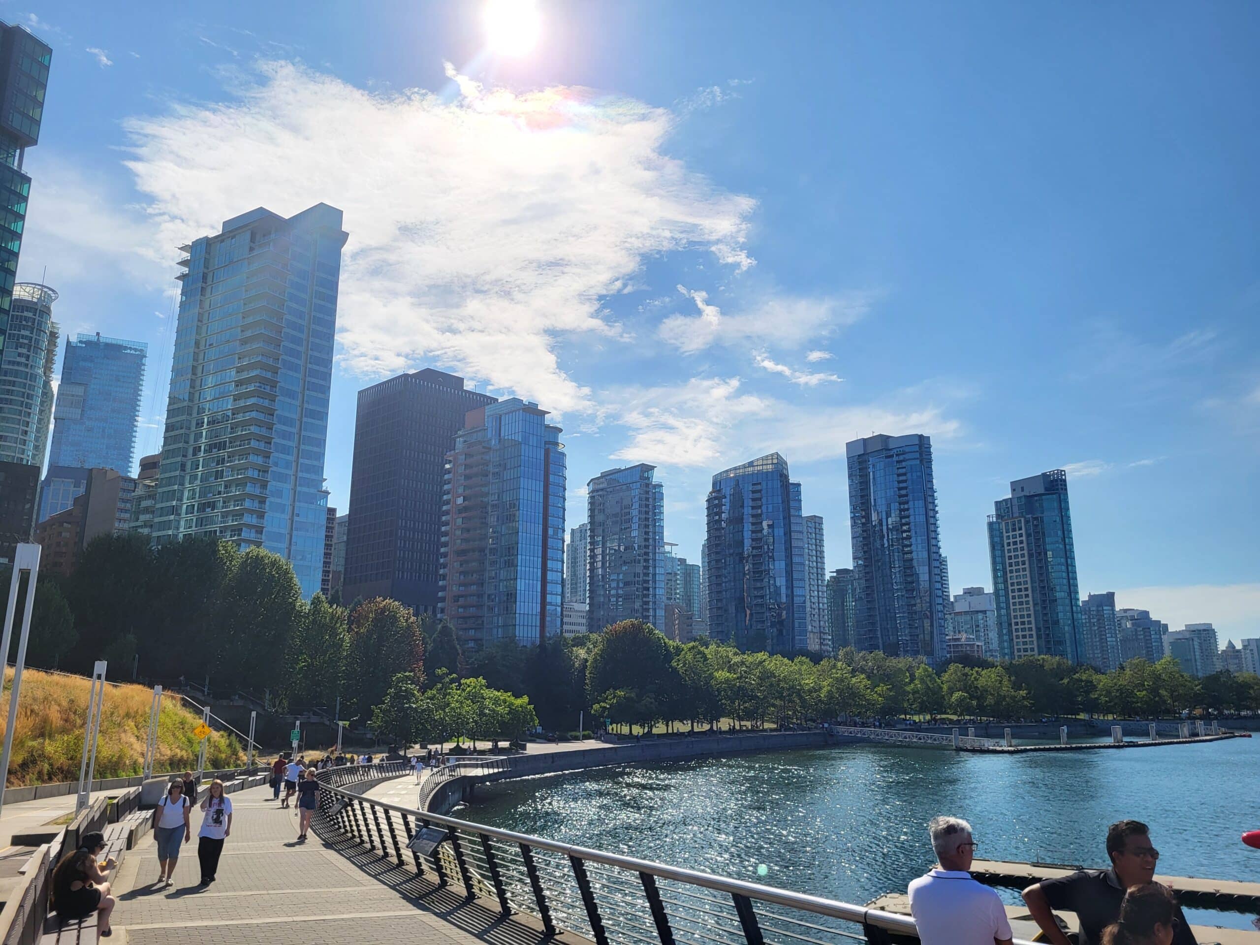 In Vancouver hatten wir über 7 Stunden Aufenthalt. Obwohl es nach unserer inneren, europäisch eingestellten Uhr schon 22 Uhr abends war, nutzten wir die Zeit, um in die Stadt zu fahren. Das Wetter war herrlich. Warme 25 Grad und Sonnenschein. So kann man unmöglich stundenlang in der Lounge sitzen.