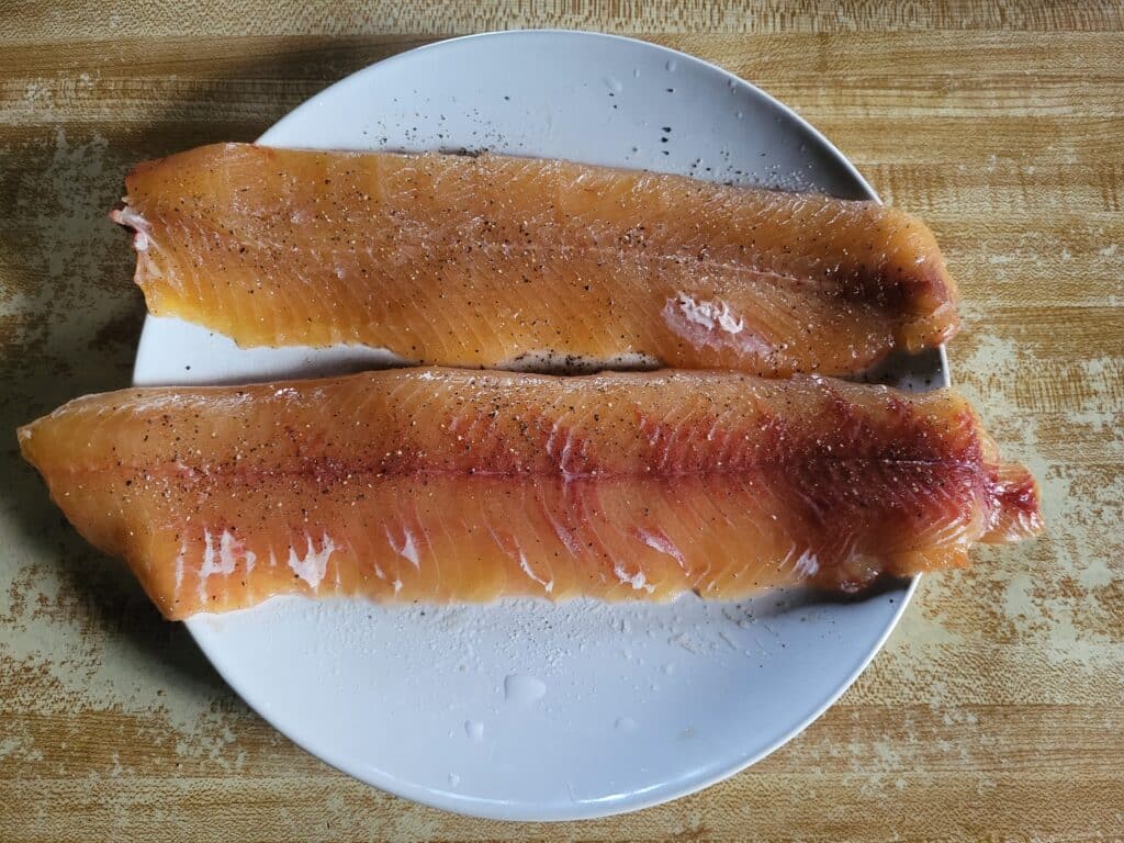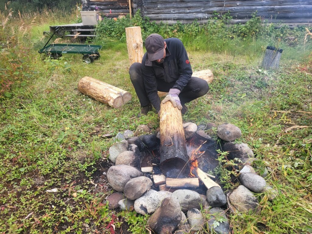 So zum Vergleich: Wenn man ohne Stress und mit wenig Gepäck geht, braucht man für die fünf Kilometer gut zwei Stunden, eher 2:15. Wir schafften es dieses Mal in 1:36! Es war wirklich nicht mehr viel Tageslicht vorhanden, als wir endlich beim Rosie Lake waren. Trotzdem mussten wir für den letzten Kilometer über den See die Kanus nochmals aufblasen. Mit klammen Fingern banden wir die Rucksäcke wieder fest und paddelten dann nach Hause. Am Ausstieg angekommen, war es komplett dunkel, ich war durchnässt vom Schwitzen und vom Regen und mir war eiskalt. Trotzdem gab es noch einige Handgriffe zu tun: Alles zur Hütte tragen, in der grossen Hütte einheizen, die nassen Sachen zum Trocknen aufhängen, die Fische filettieren – und die Sauna einheizen. Die wir dann richtig, richtig genossen haben! 🙂
