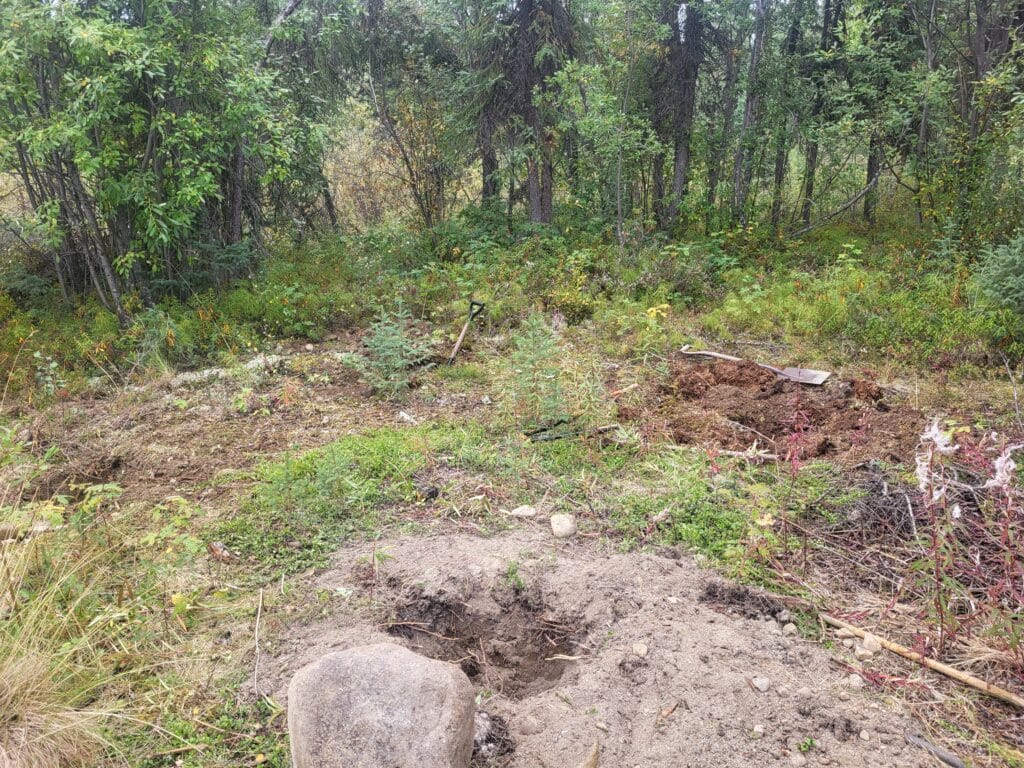 Das haben wir lange diskutiert. Klar war, dass er komplett auf dem Grundstück sein soll (nicht, dass jemand das Abreissen verlangen könnte). Ausserdem wäre etwas Aussicht auf den See toll, es soll nicht zu weit vom Haus weg sein und der Weg in den See zum Abkühlen ist ein Punkt zum Beachten. Zuerst wollten wir die Sauna östlich vom grossen Cabin bauen, dort wo Tom und Rhonda ein bereits angefangenes Cabin hinterlassen haben. Diesen Plan haben wir verworfen, weil wir zuerst den Rückbau hätten machen müssen (Zeit!) und die Sauna auch vom Haus aus nicht sehen könnten.