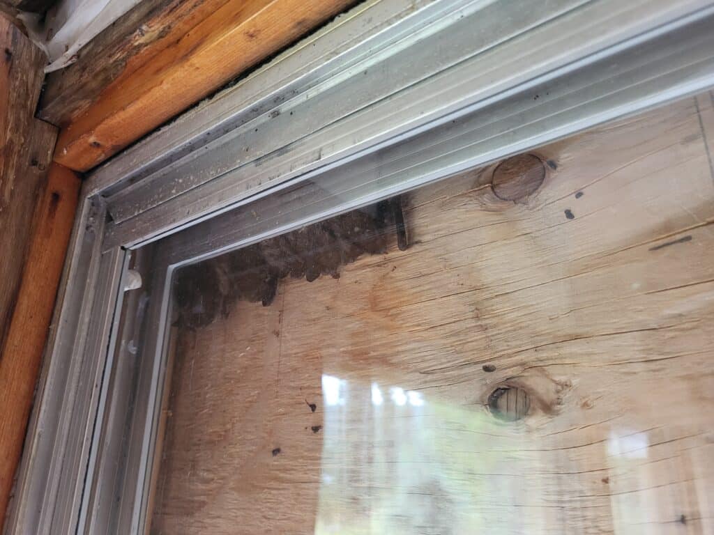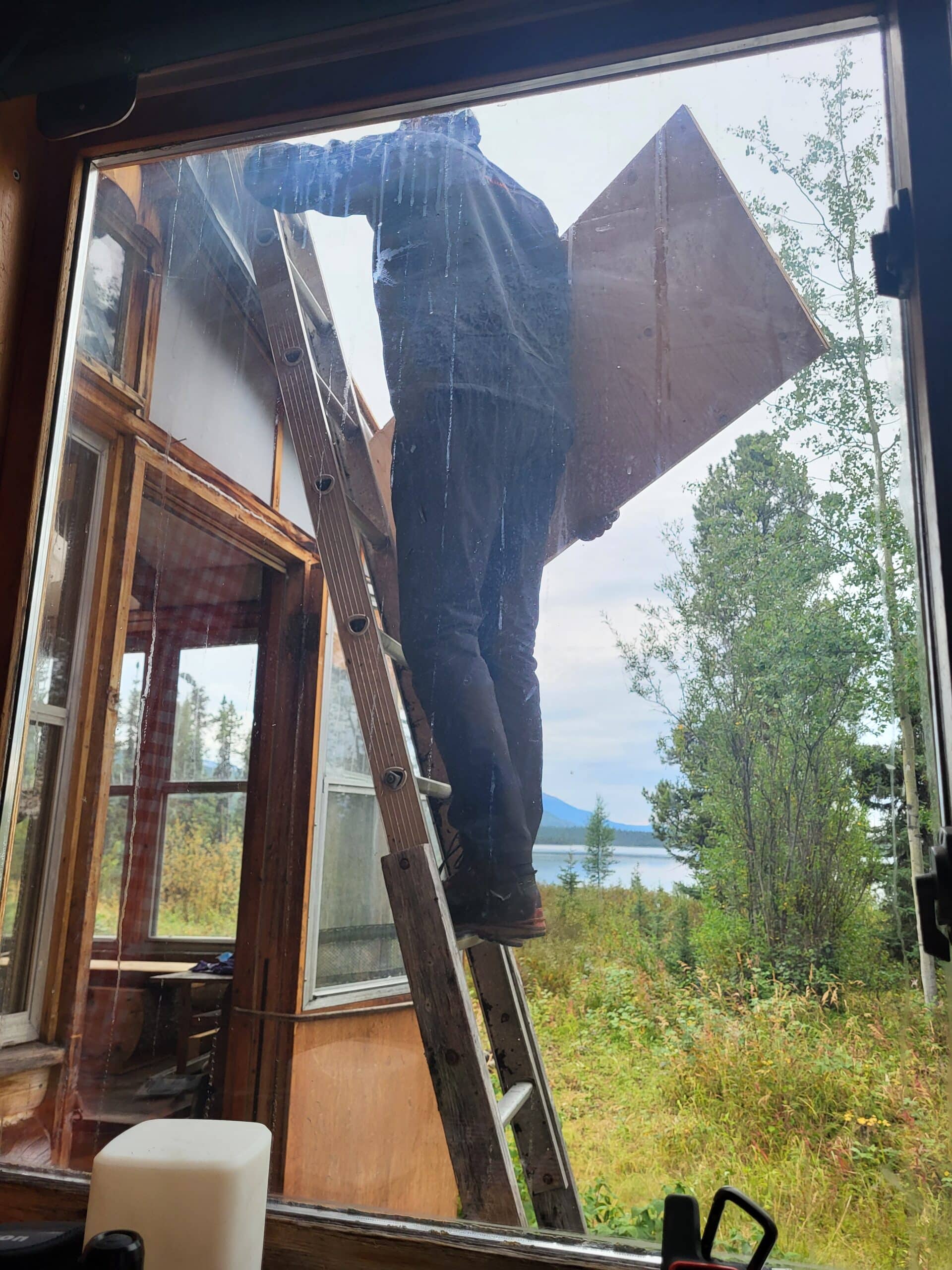 Natürlich galt der erste Blick am Montag Morgen dem aus dem Schlafzimmerfenster. Was wir sahen, war nicht unbedingt erfreulich – aber zu erwarten: Die Regenwolken hingen tief über dem Rosie Lake, man sah kaum bis zum Ufer. Trotzdem machten wir mit dem Programm weiter nach Plan: Kaffee trinken, fertig aufräumen, die letzten Fensterpaneele montieren.