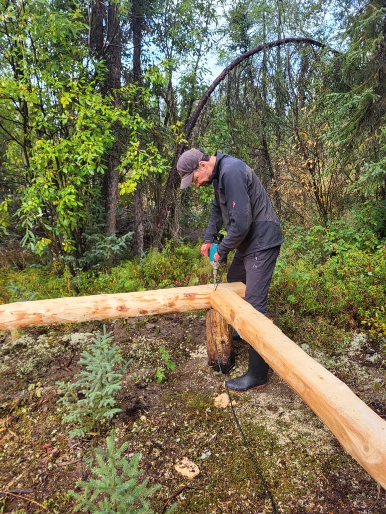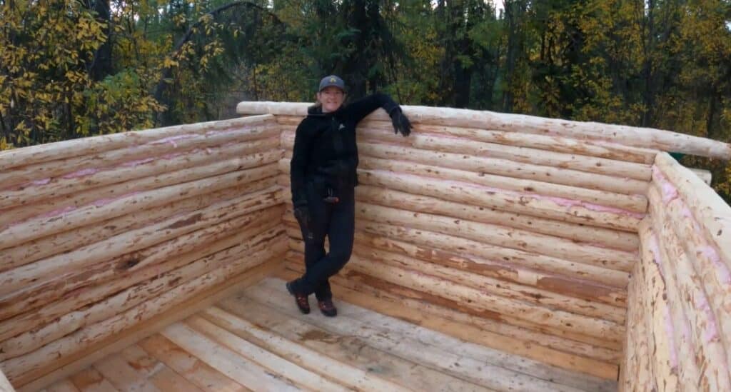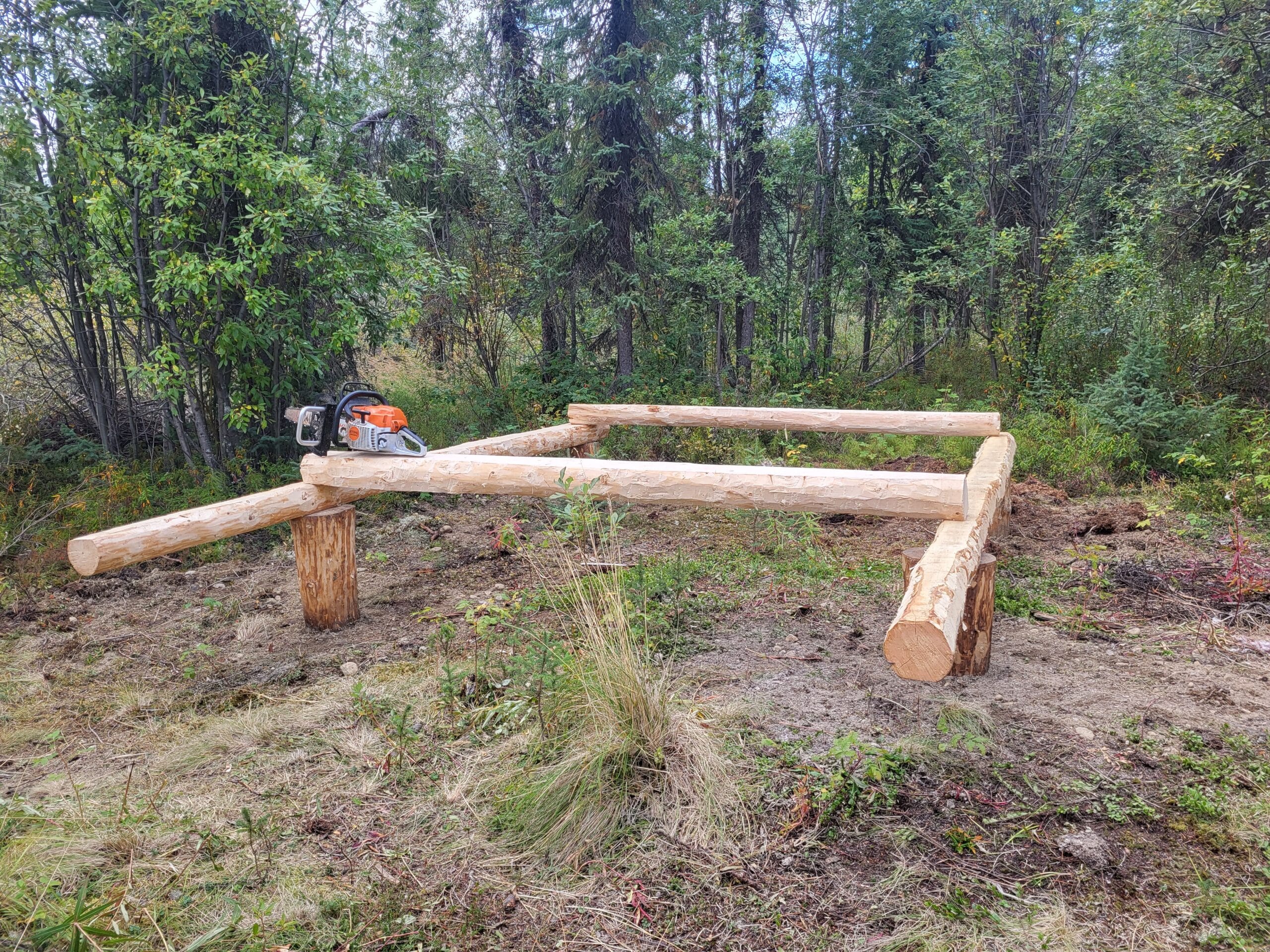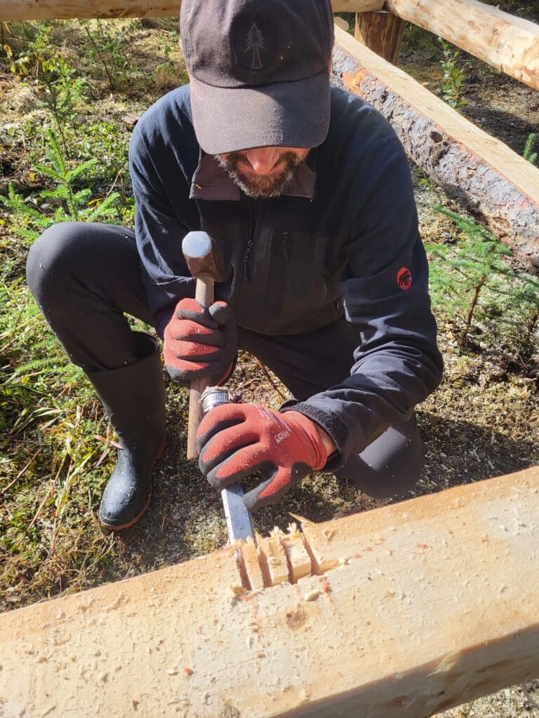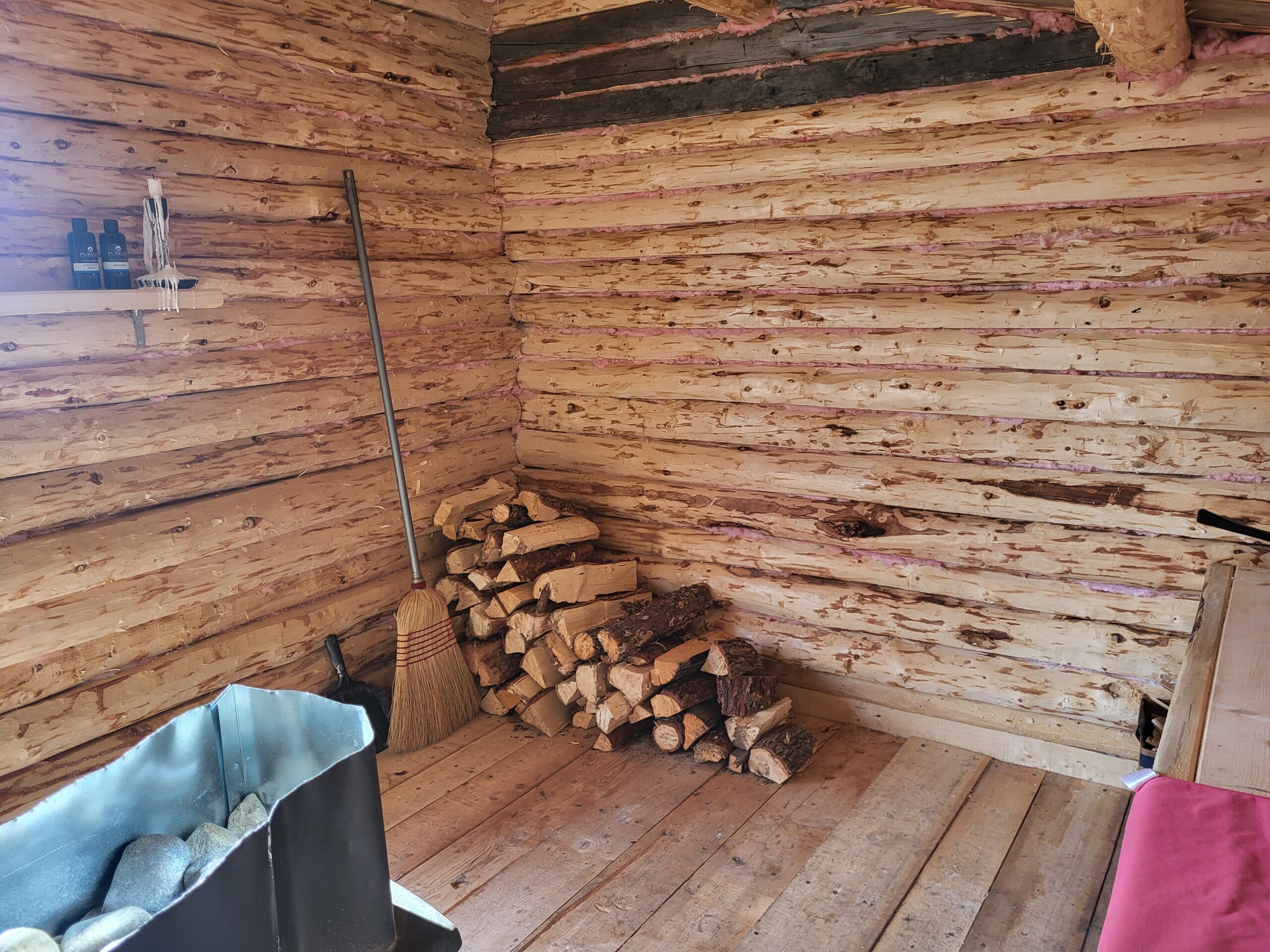 Die Planung für unser Vorhaben hat schon lange vor der Reise in der Schweiz begonnen. Wir prüften allerlei Möglichkeiten, wie wir auf einfache Art und Weise zu einer Sauna kommen konnten. Wir scheuten uns etwas vor der grossen Herausforderung mit dem Blockhausbau und recherchierten auch zu Zelten und Yurten. Dazu müsste man „nur“ eine Holzplattform bauen (das haben wir mit der Veranda gar nicht so schlecht hingekriegt) und stellt dort temporär das Zelt / die Yurte auf, wenn man vor Ort ist. Irgendwie sprang der Funke aber nicht über und zum Schluss landeten wir immer wieder beim Holzblockhaus. Das ist zwar sehr viel Arbeit, bietet aber auch einige Vorteile: Es kann zum Beispiel auch als Redundanz-Hütte dienen, falls mal mit dem grossen Cabin was ist. Ausserdem muss man es nicht immer wieder auf- und abbauen, wenn man kommt und geht und es bietet einen etwas besseren Schutz vor Angriffen aus der Tierwelt.