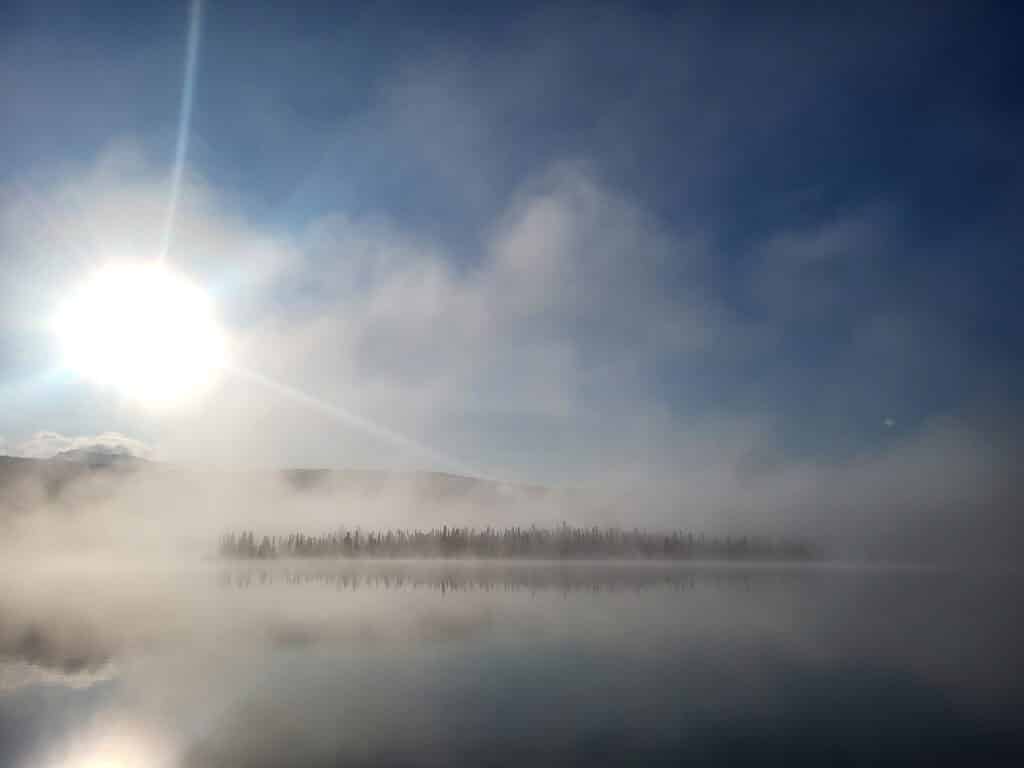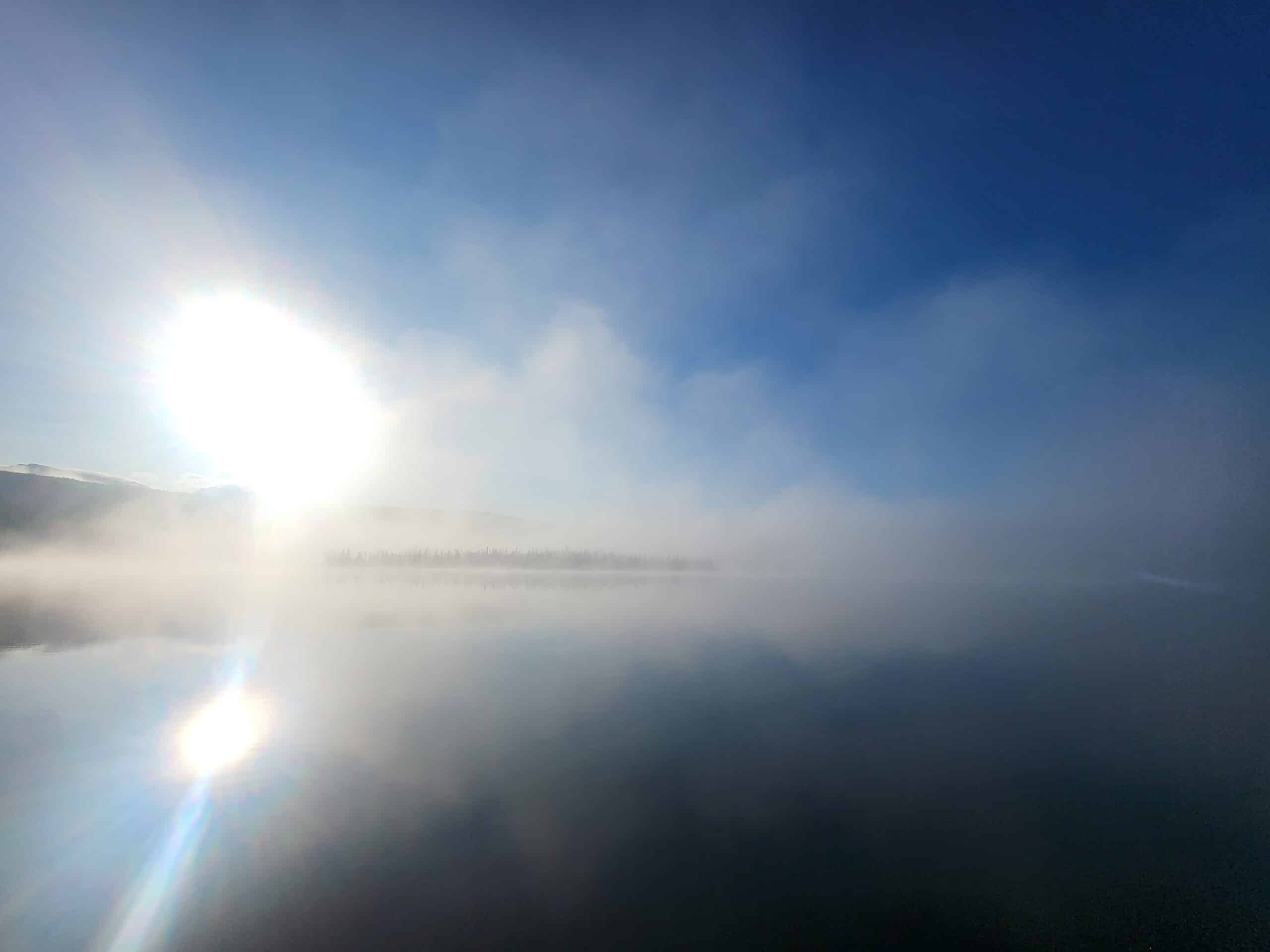 Wir erwachten mit dem Wecker um 6 Uhr zu einem weiteren strahlend blauen Himmel, nachdem wir wie der sprichwörtliche Stein geschlafen haben. 9 Stunden lagen wir in den Federn und konnten uns nach dem Marathon von letzter Nacht gut für die nächste – und letzte – Etappe der langen Reise ausruhen: Auf nach Rosie Lake!