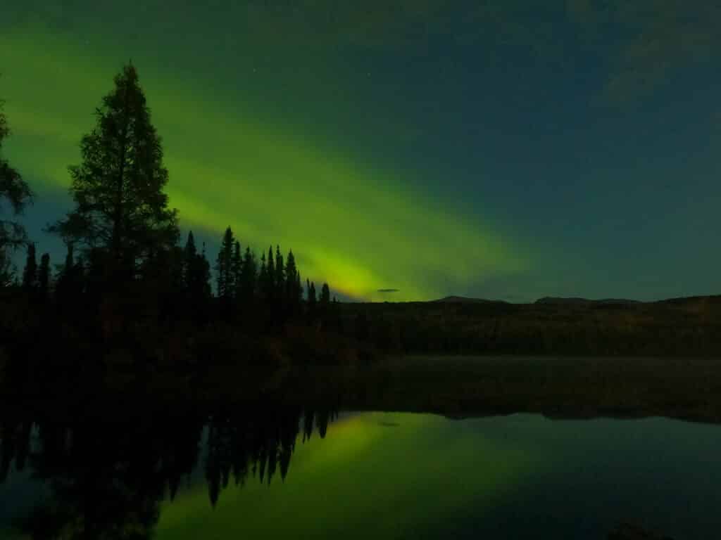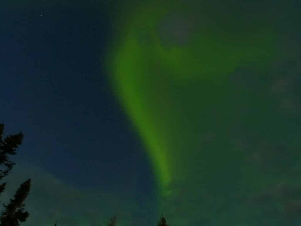In der Nacht weckte Oliver mich, als er kurz draussen wir mit dem Ruf „Nordlichter!“. Da war ich schnell bereit und warf mir im Vorbeigehen eine Jacke über die Schulter. Gemeinsam bestaunten wir die sanften Lichter, die sich über den Himmel ausbreiteten und die funkelnden Sterne. Schnell wurde es aber zu kalt und wir gingen zurück und krochen unter das noch warme Duvet.