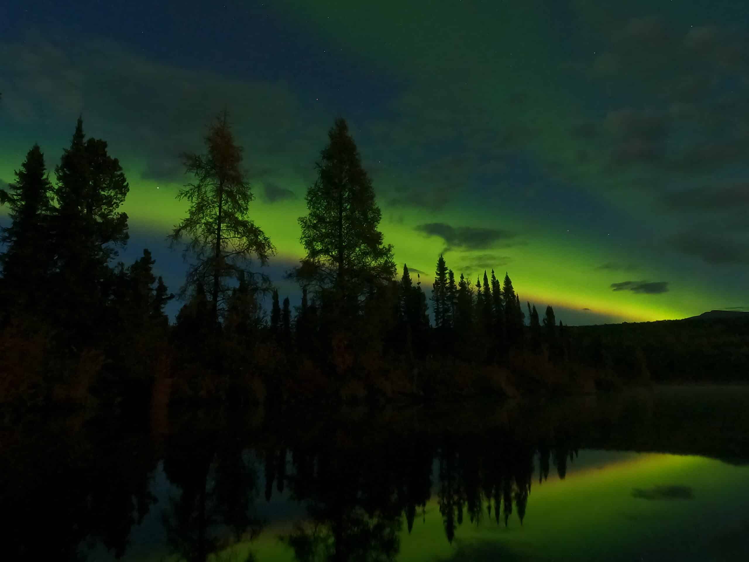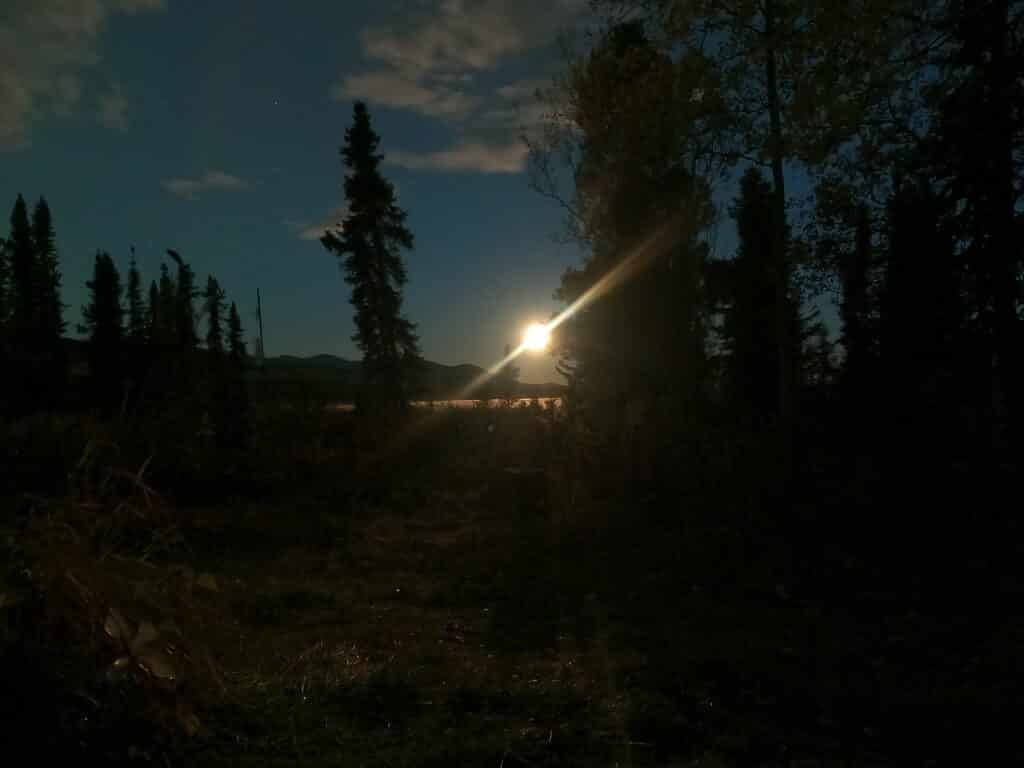 Nordlichter sind im Yukon nicht ungewöhnlich, dass sie jedoch schon gegen 22 Uhr so stark zu sehen sind (und erst noch mit Vollmond), ist schon eher selten.