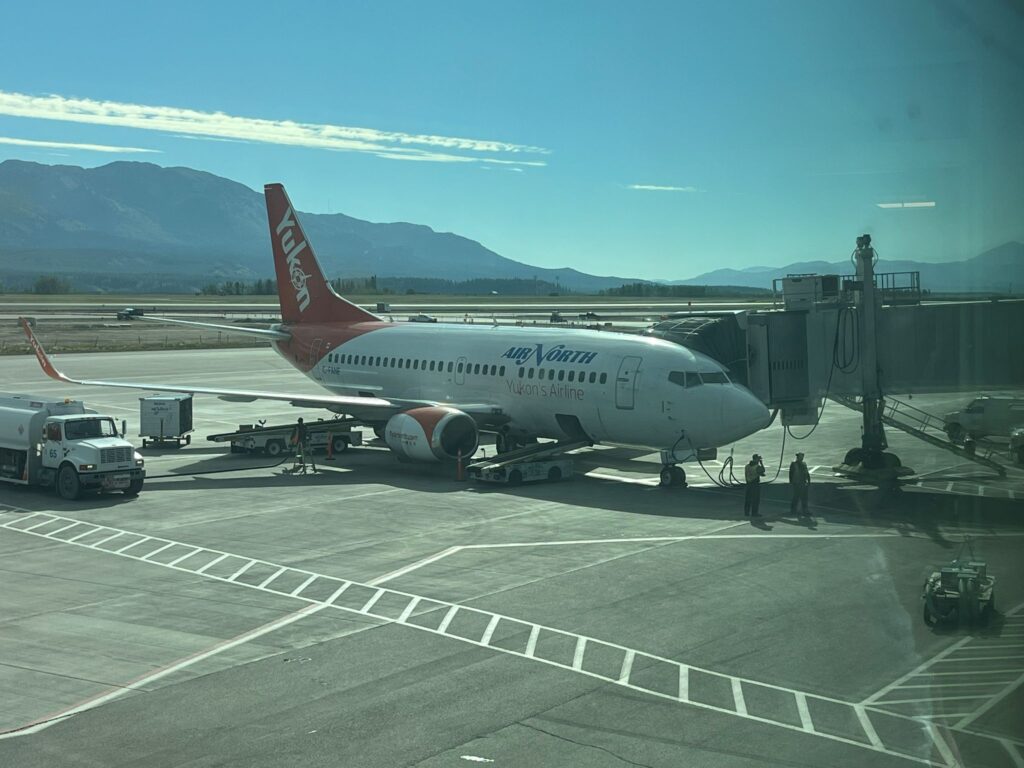 Der Abflug war geplant für 22:00 Uhr. Beim Gate angekommen sahen wir, dass wir nun mit 22:25 Uhr rechnen mussten. Naja, nicht so schlimm. Sind wir halt gegen 1 Uhr statt 00:24 Uhr in Whitehorse. Pläne hatten wir sonst ja keine mehr heute 🙂